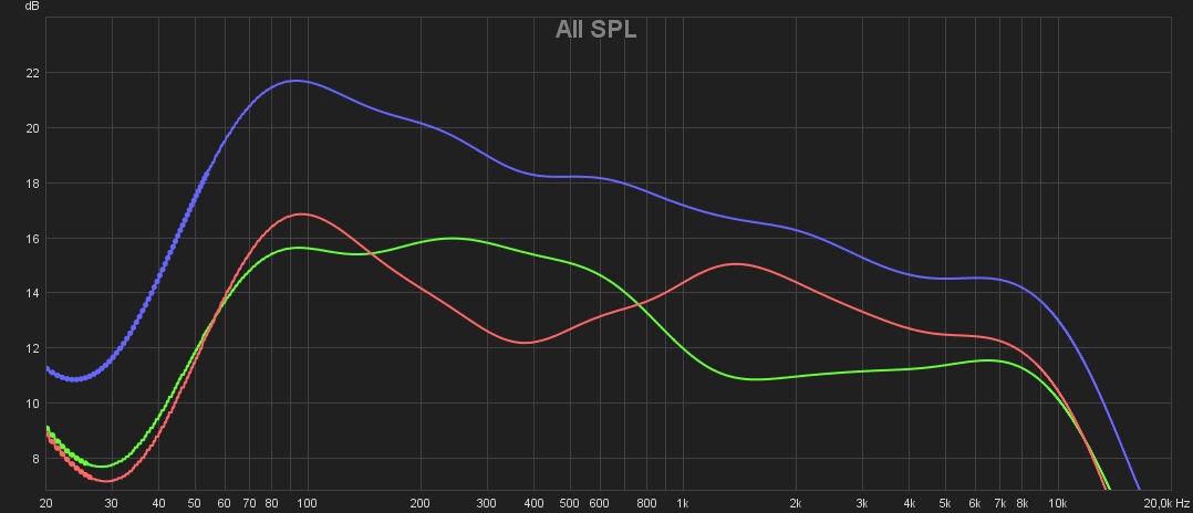 Bevor hier zig Einwände und Fragen zu Thema „ich ignoriere dabei Phasenverlauf usw.“ kommen, sage ich gleich: ja, ich ignoriere das Thema Phase. Für mich sind die Phasen schon vorher bei der Einstellung von LZK/Impulsantwort/Trennfrequenzen endgültig bestimmt/eingestellt und werden danach nicht mehr betrachtet -> in der oben genannten Referenzkurvenbetrachtung wird der Focus einzig und alleine auf den Frequenzgangsverlauf gesetzt.
