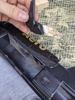 Brauchte ich aber nicht, da die Plastikteile sich jetzt mit dem ganzen Butyl dran und dem OCA nur noch mitm Hammer in Position bringen ließen. Sie sitzen jetzt komplett fest auch ohne Kleber. Es gibt so kleine Rastnasen, die in der Endposition in ein Loch im Schweller einrasten, die habe ich einfach abgeknipst und das Loch verschlossen. Wie gesagt, die Halter sind mal so richtig fest verklemmt jetzt.