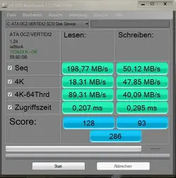 SATA2?? Wobei die 4K-64Thrd-Werte dagegen sprechen. Aber die sequenziellen Lesegeschwindigkeiten schauen so niedrig aus